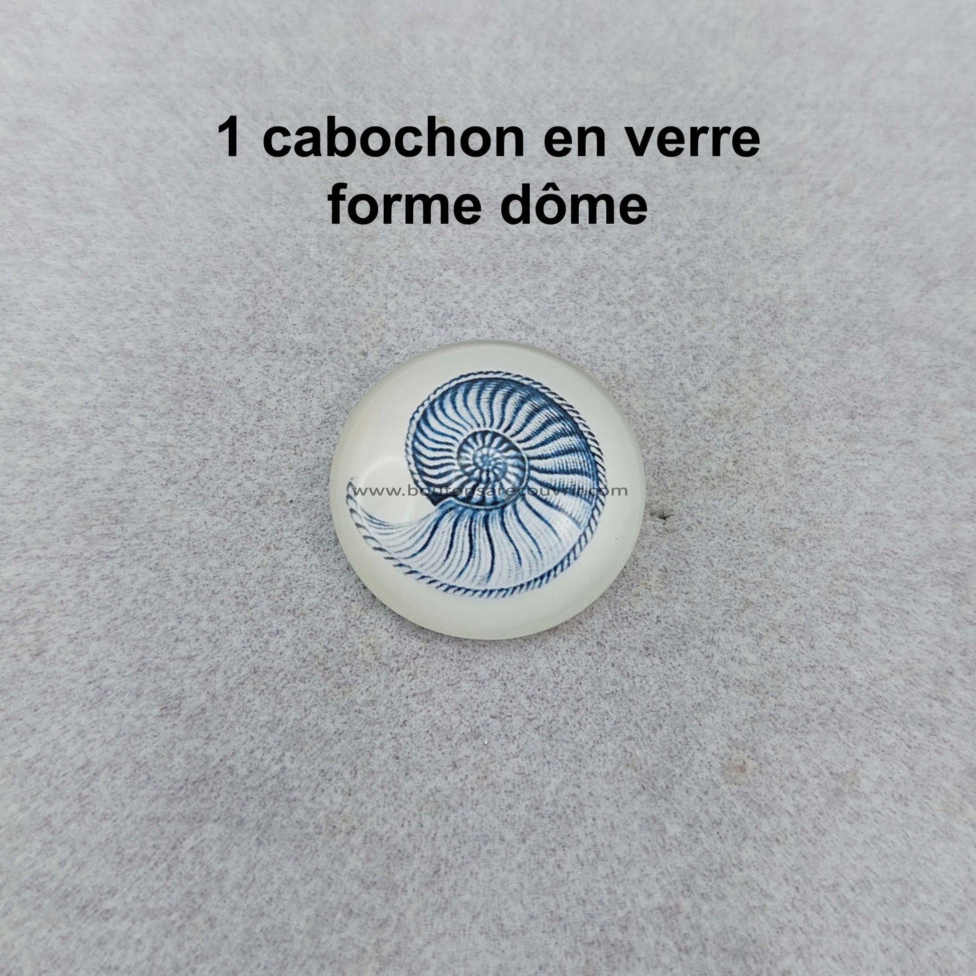 1 Cabochon en verre "AMMONITE", forme dôme