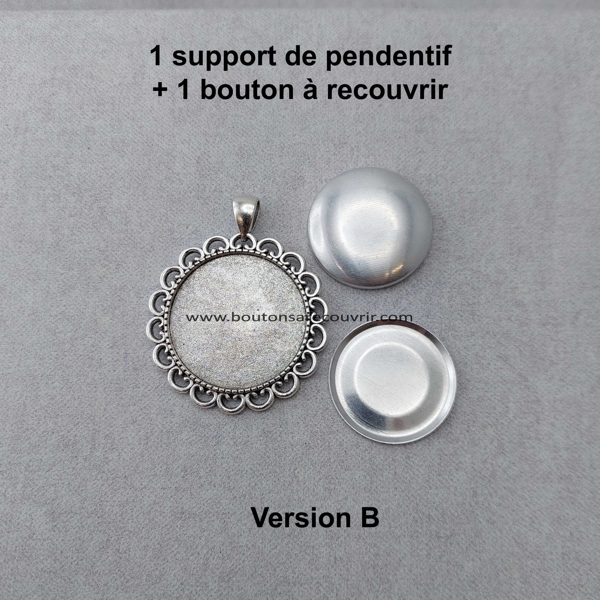 Version B - 1 support de pendentif "Oky 30" + 1 bouton à recouvrir 28 mm :