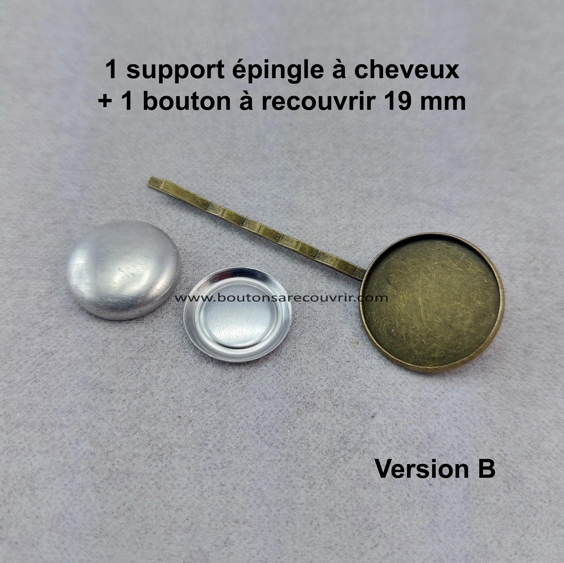 B - 1 support d'épingle à cheveux + 1 bouton à recouvrir 19 mm