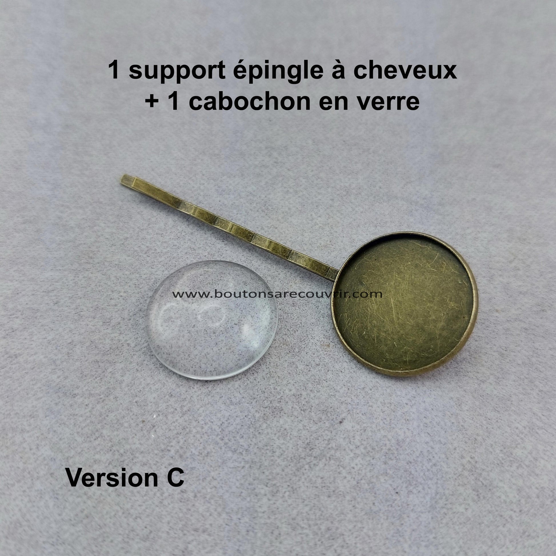 C - 1 support d'épingle à cheveux + 1 cabochon en verre 20 mm