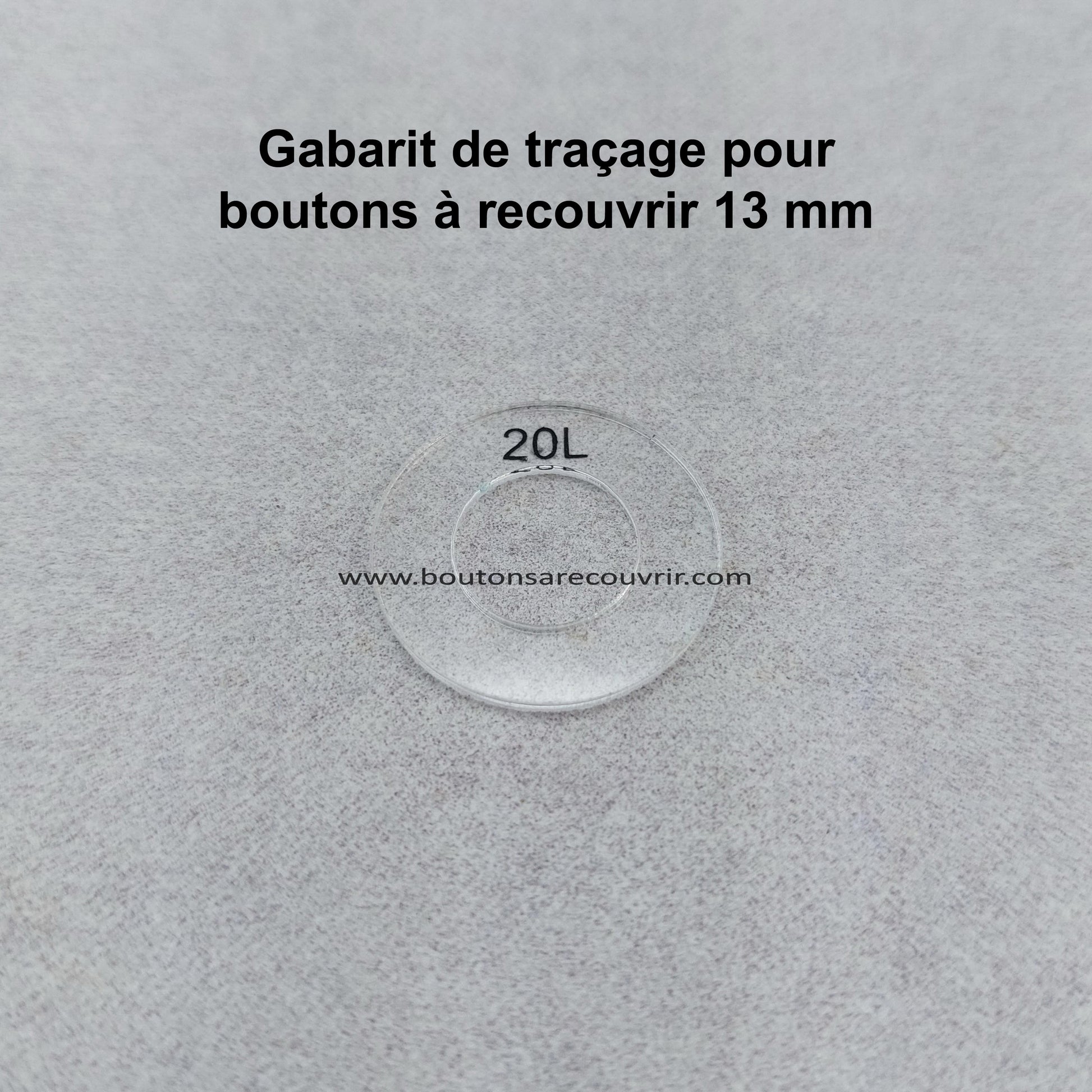 Gabarit de découpe et de centrage pour boutons à recouvrir 13 mm.