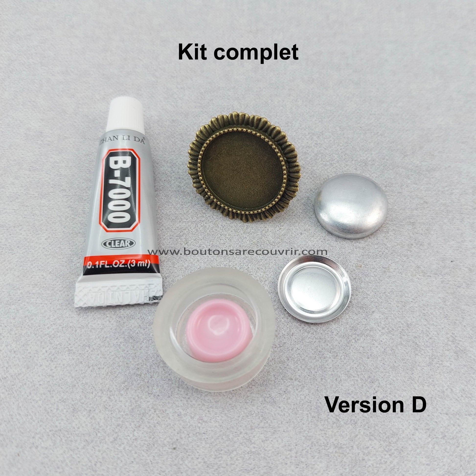 ATTENTION, cette version ne comprend ni la colle, ni l'outil de montage du bouton à recouvrir 19 mm.