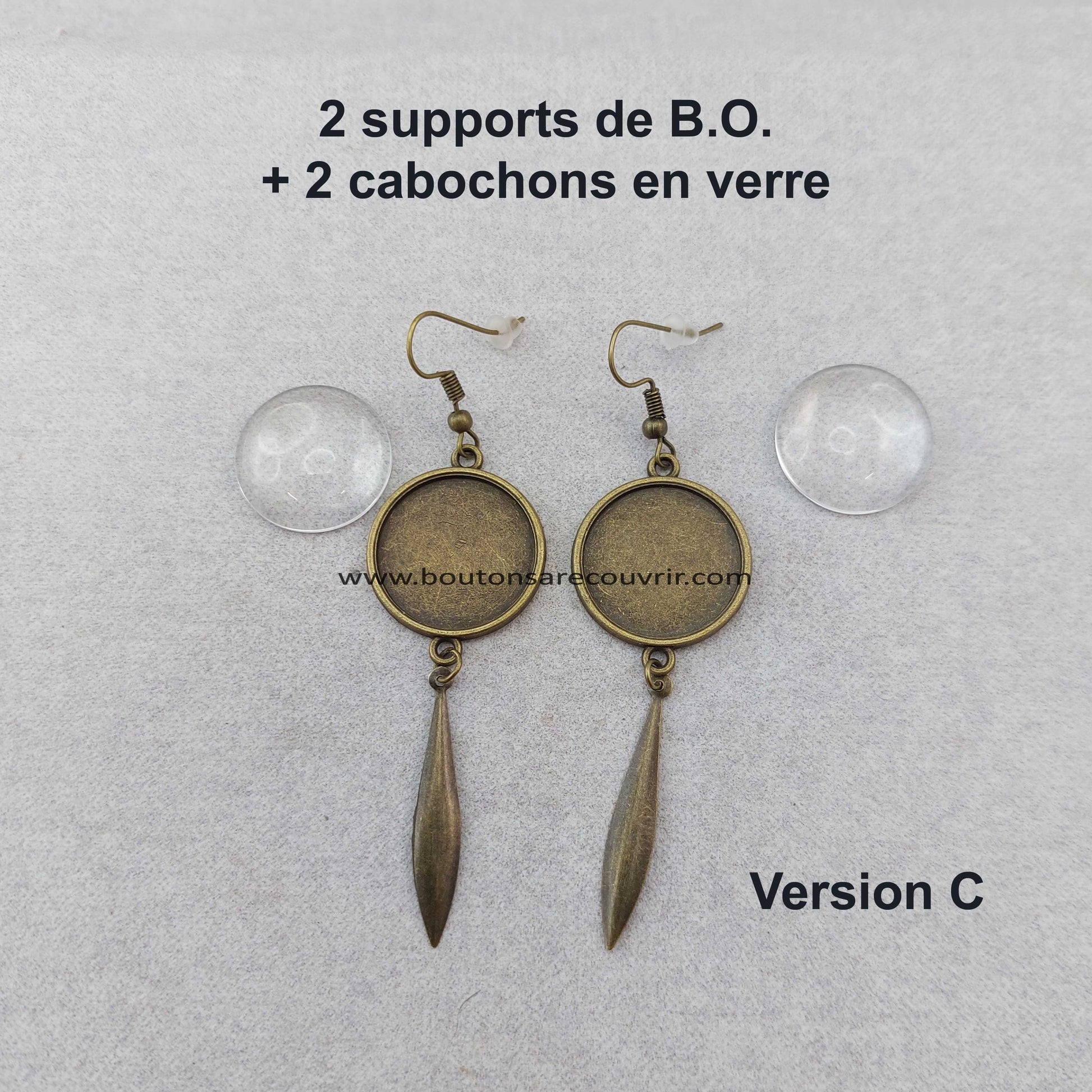 C - 2 supports de B.O. + 2 cabochons en verre 16 ou 20 mm