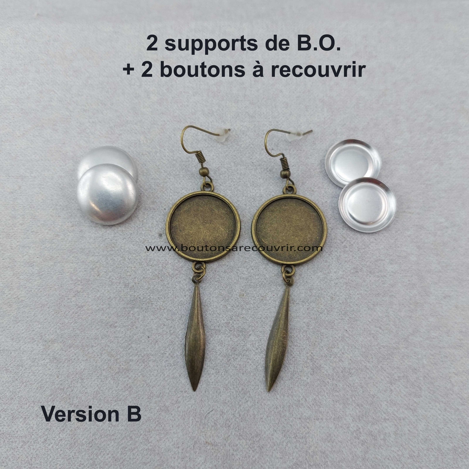 - 2 supports de B.O. "Adrya 16 ou 20" pour boutons à recouvrir 15 ou 19 mm ou cabochons en verre 16 ou 20 mm