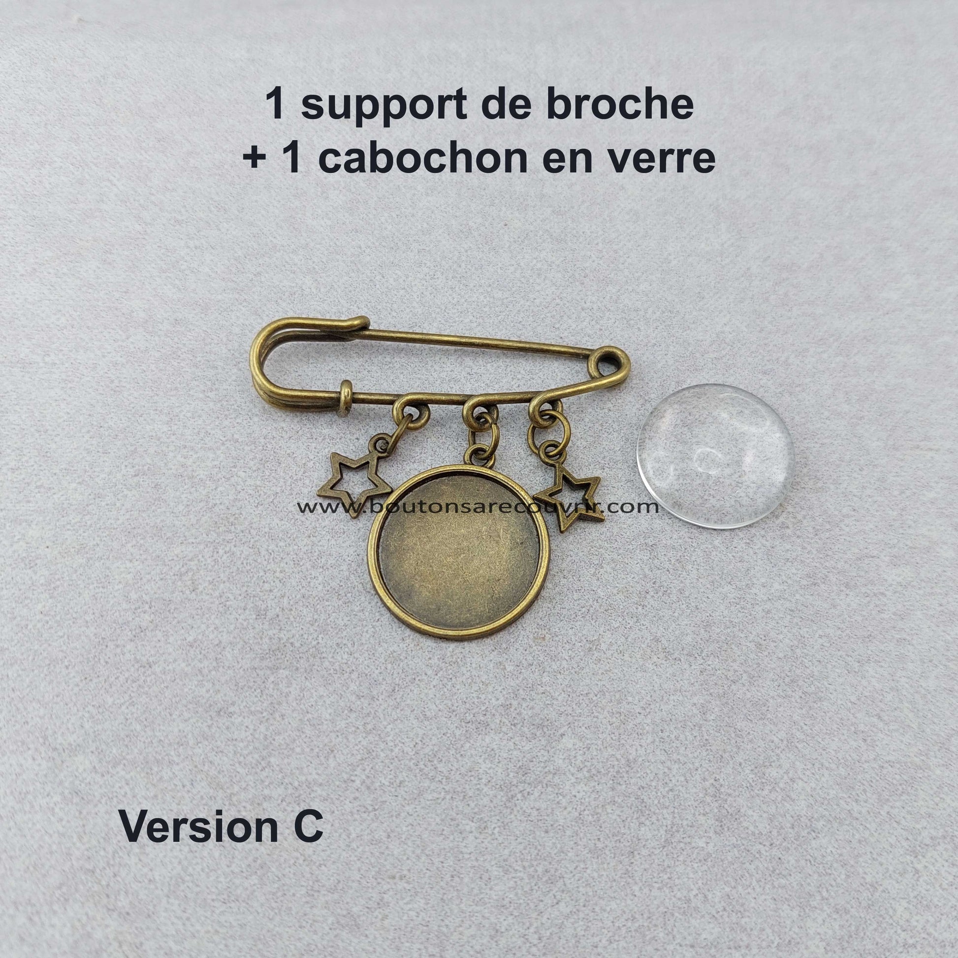 C - 1 support de broche + 1 cabochon en verre 20 mm