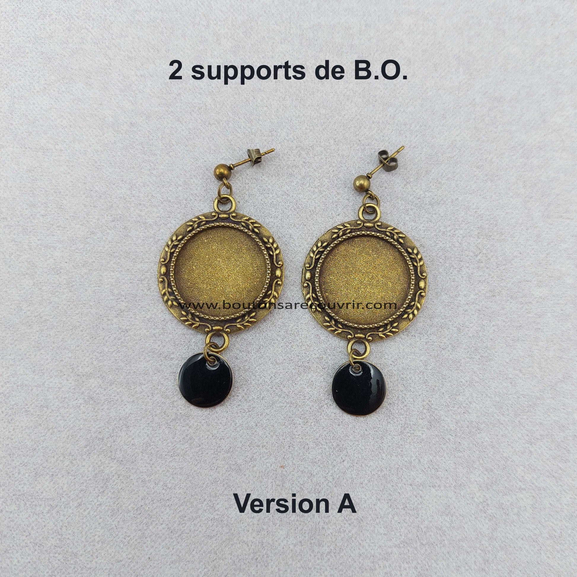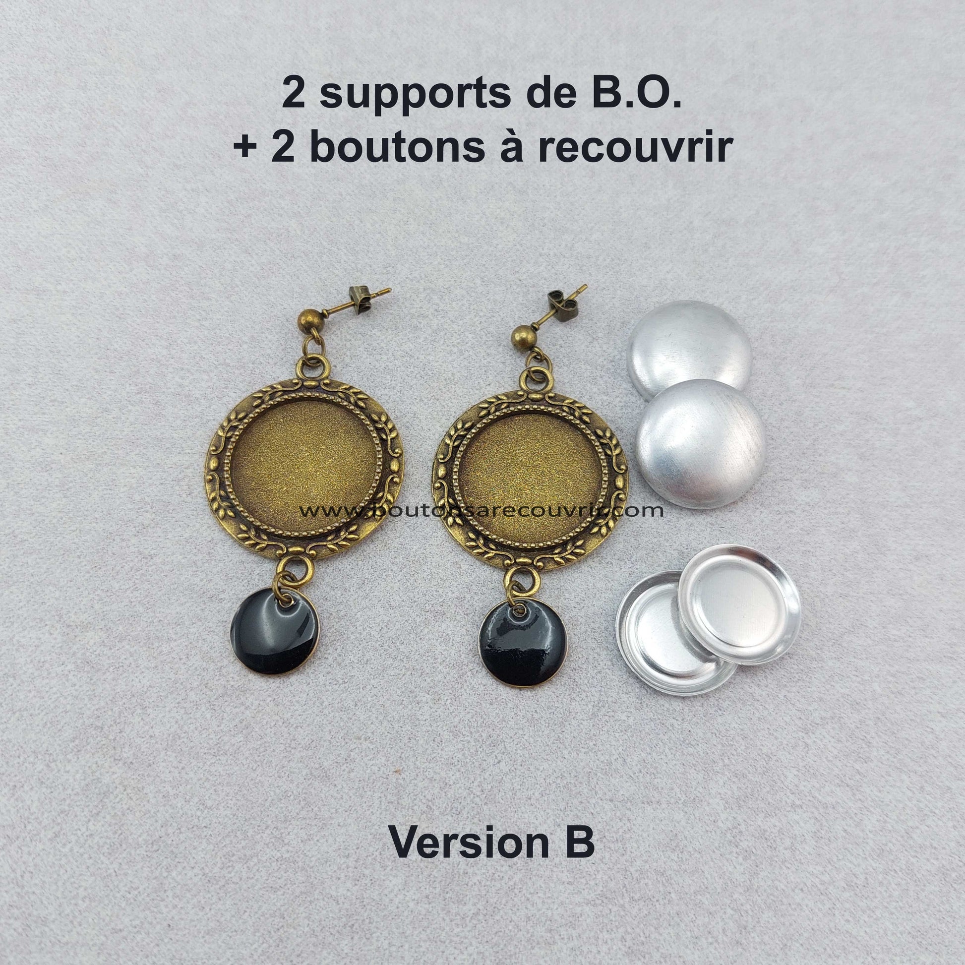 - 2 supports de B.O. "Kaya 20" pour boutons à recouvrir 19 mm ou cabochons en verre 20 mm