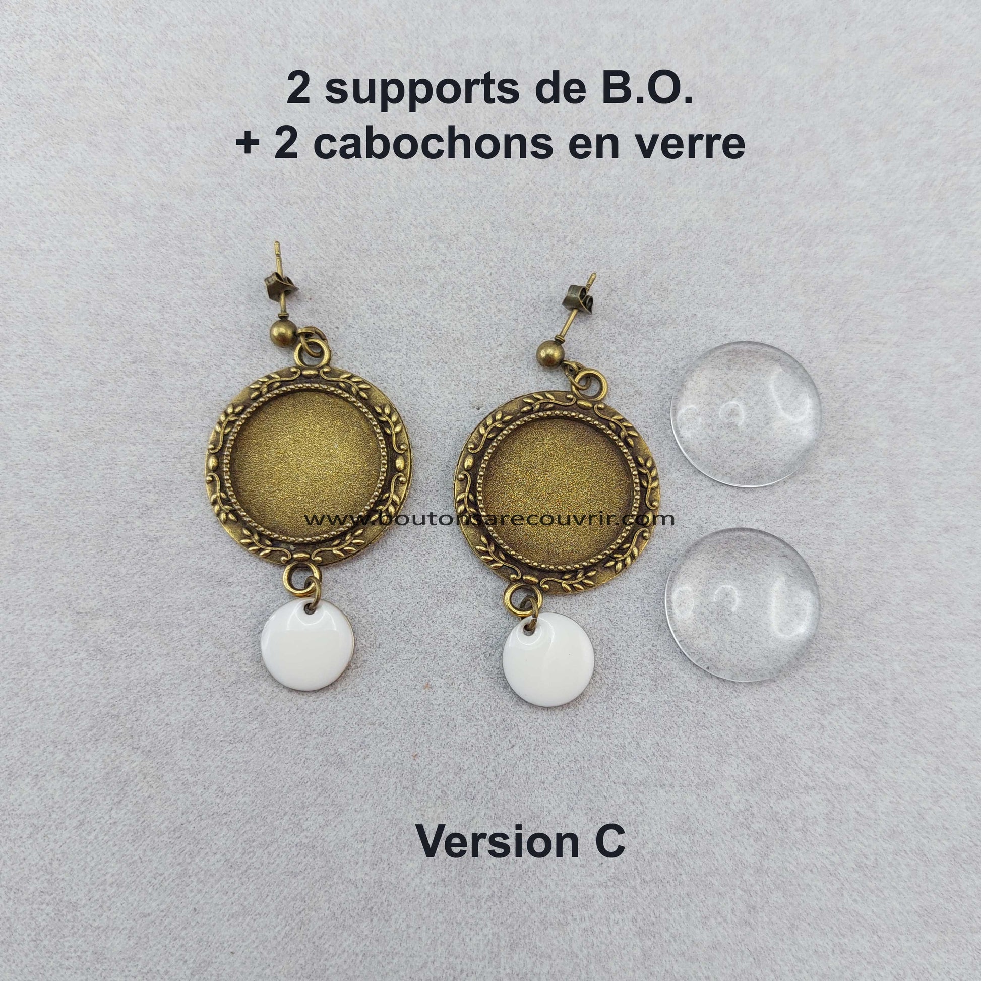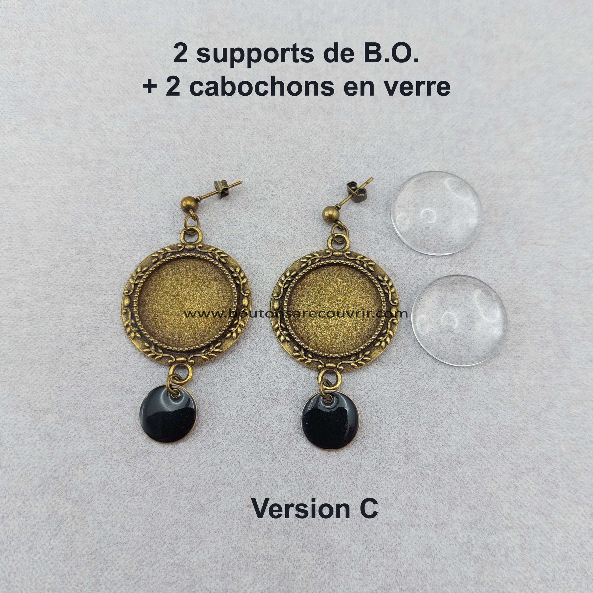 C - 2 supports de B.O. + 2 cabochons en verre 20 mm