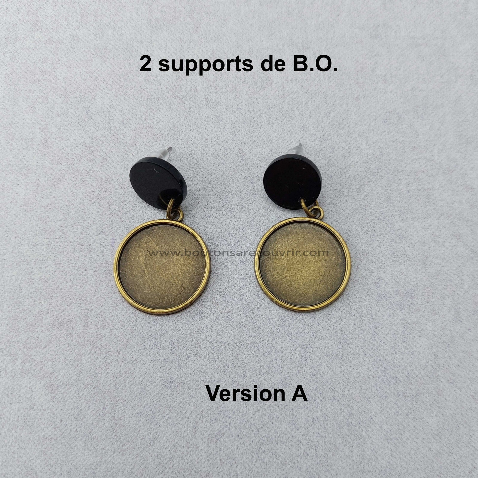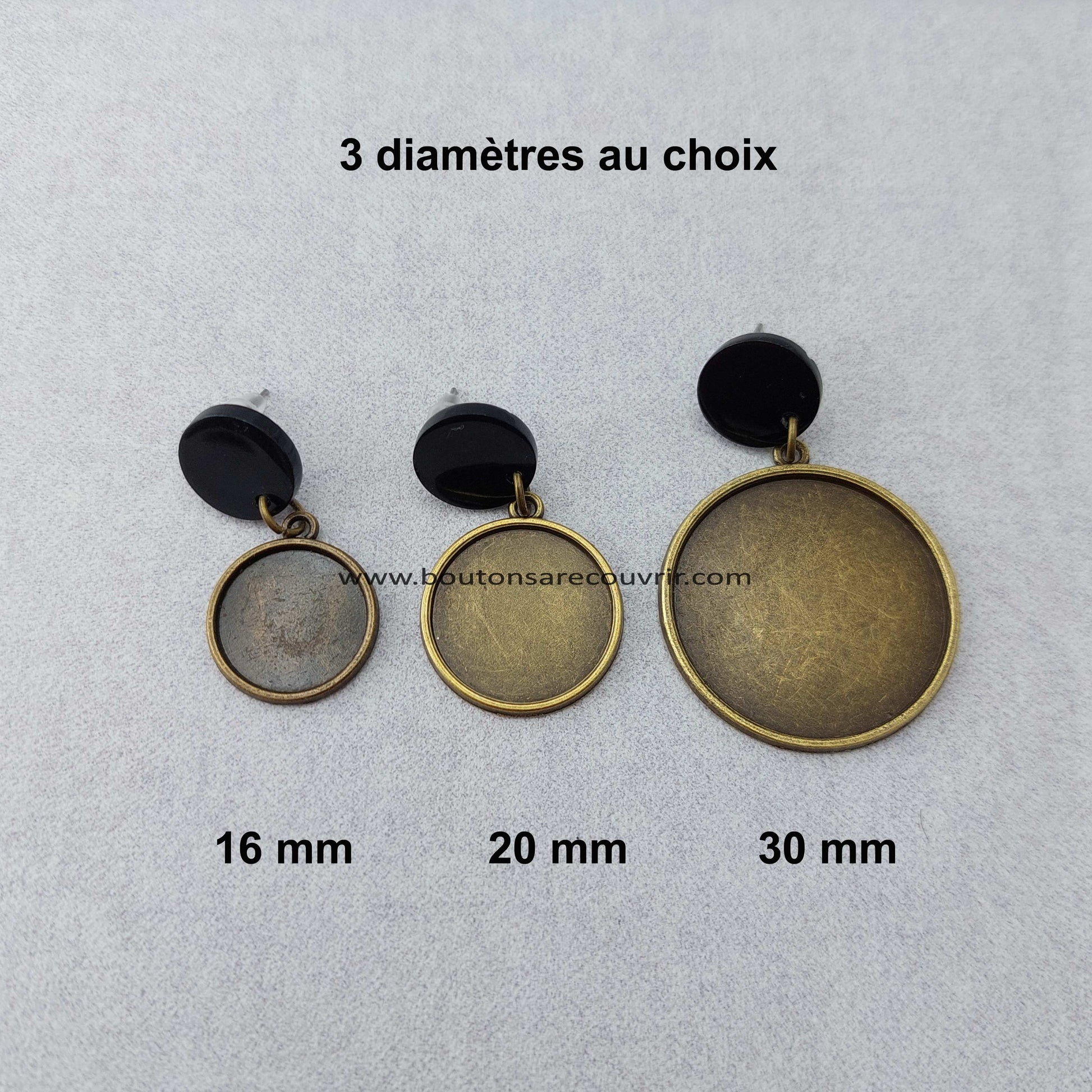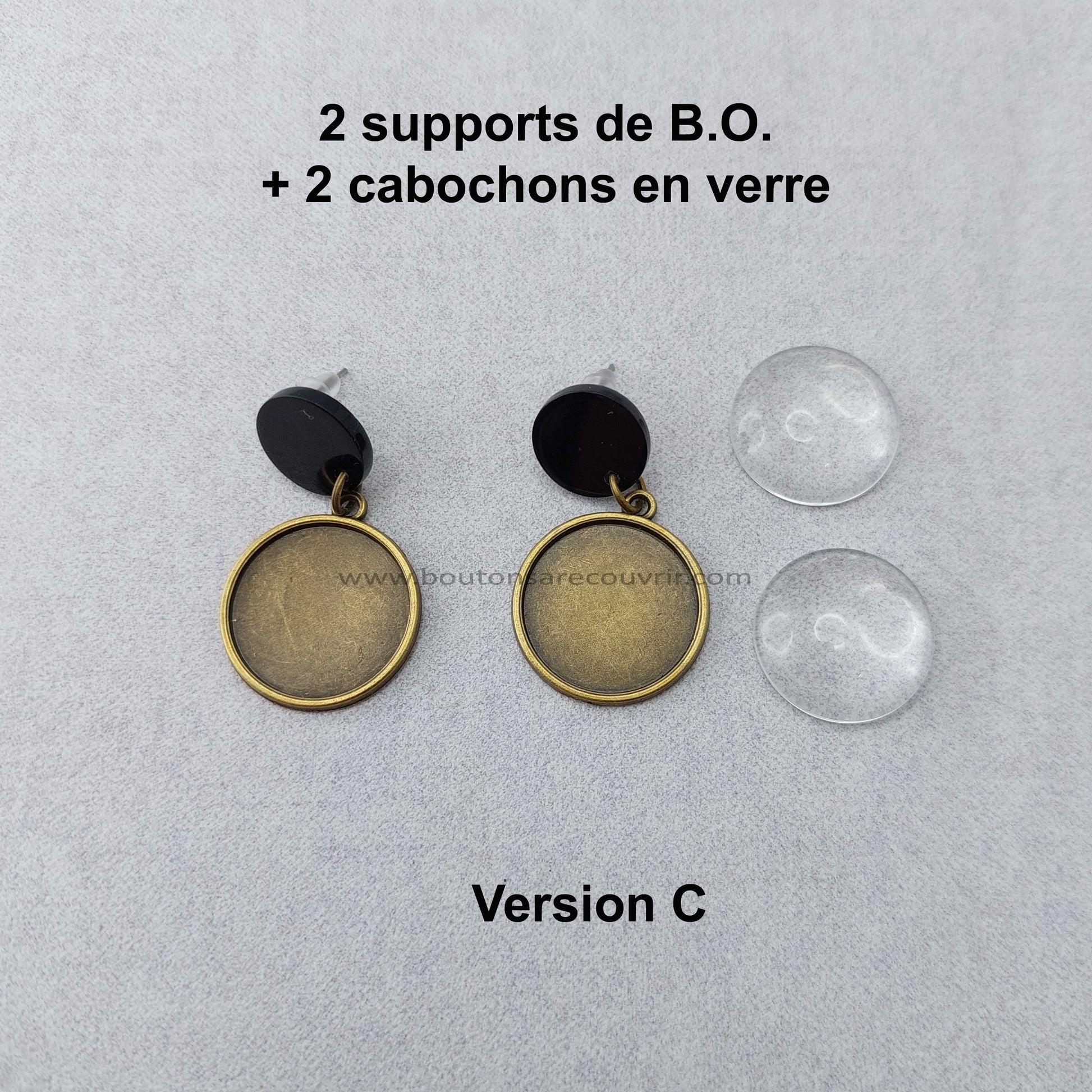 - 2 supports de B.O. "Oxa 16, 20 ou 30" pour boutons à recouvrir 15, 19 ou 28 mm ou cabochon en verre 16, 20 ou 30 mm