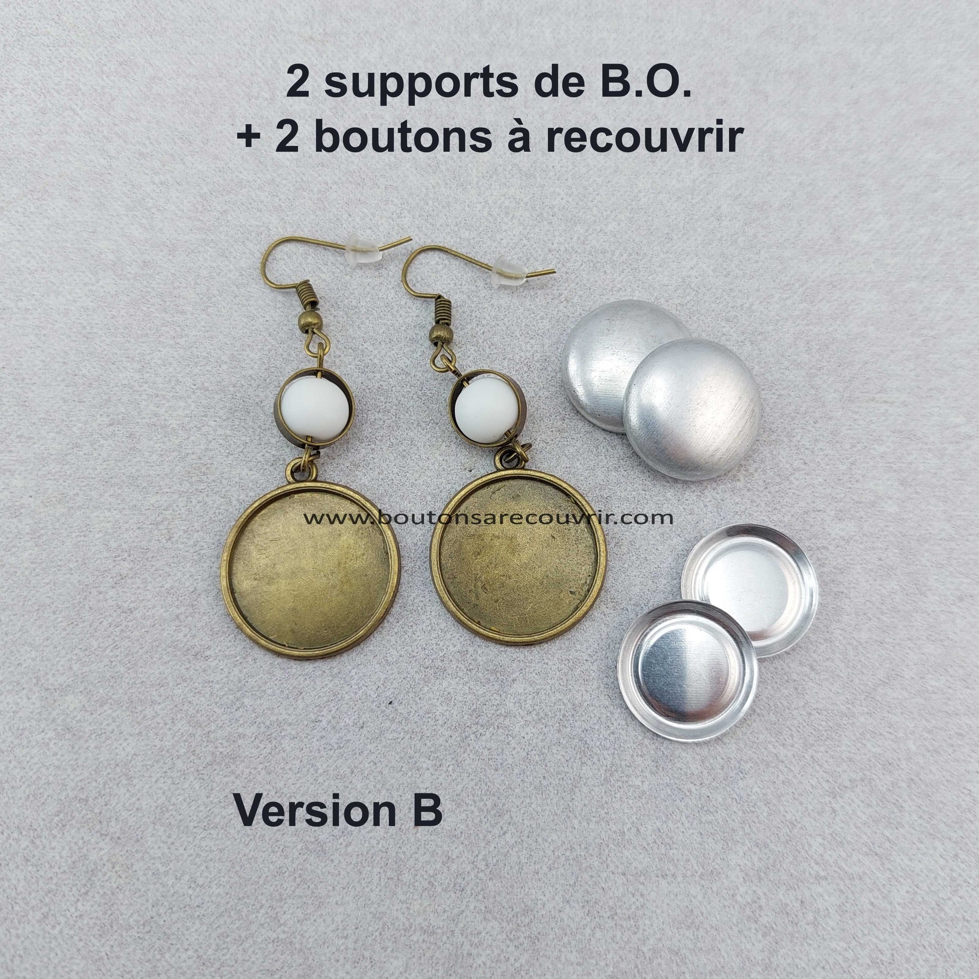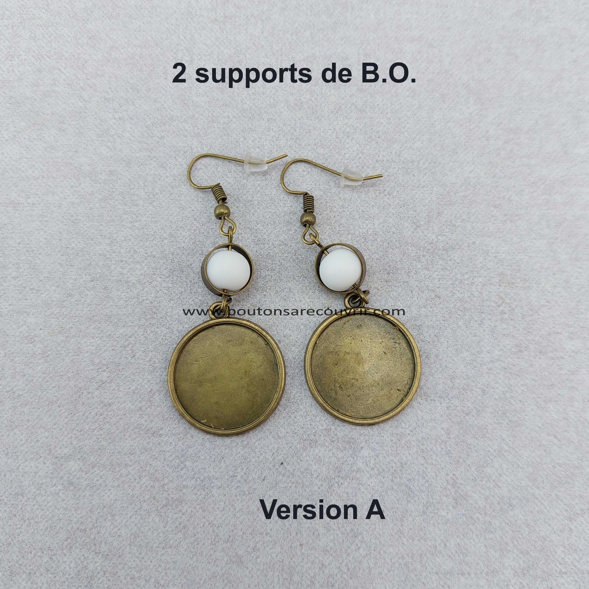 - 2 supports de B.O. "Wally 16 ou 20" pour boutons à recouvrir 15 ou 19 mm ou cabochons en verre 16 ou 20 mm